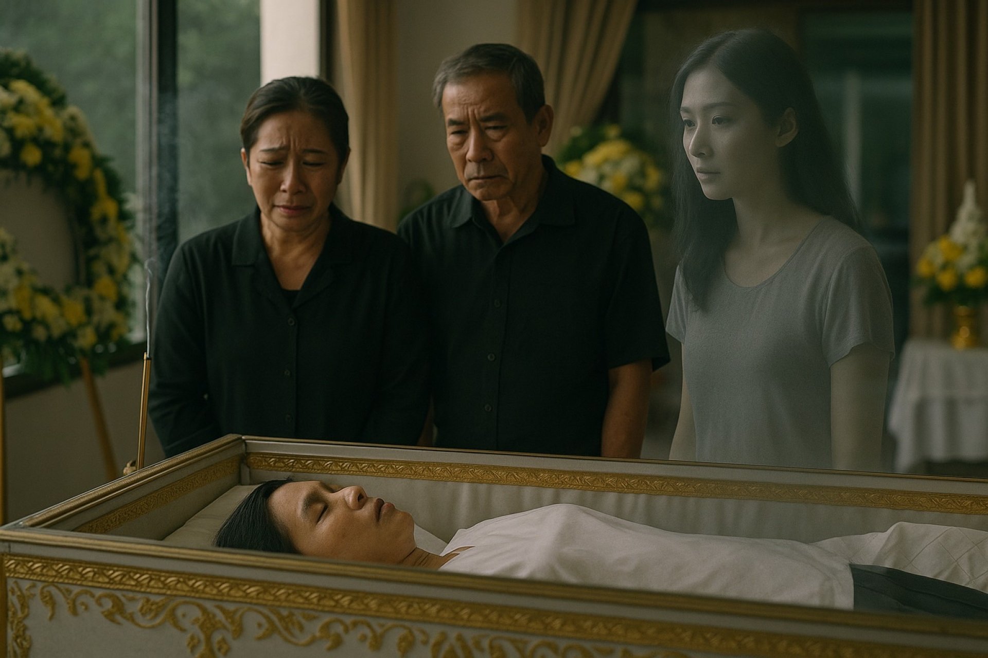 เสียงนั้น ไม่ได้พูดออกมา แต่คือความคิดที่ชัดเจนในใจ ร่างของฉันนอนนิ่งอยู่บนเตียง ในขณะที่ฉันอีกคนหนึ่งลอยอยู่เหนือมัน ใบหน้าฉันซีดเผือด ดวงตาหลับสนิท และรอบข้างเต็มไปด้วยเสียงร้องไห้ของคนที่รัก