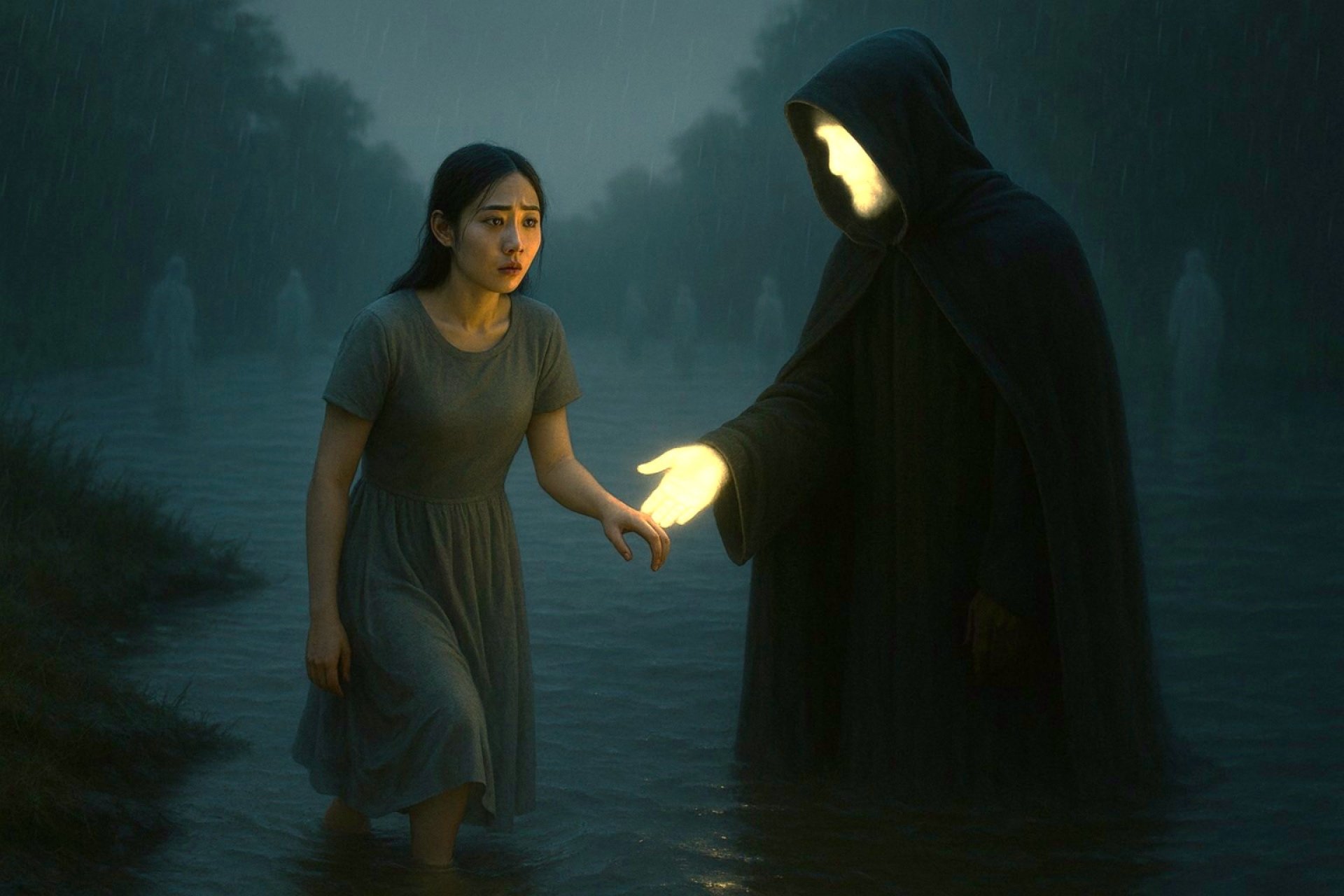 เบื้องหลังคือเส้นทางยาวไกลผ่านดินแดนแห่งเงา แม่น้ำแห่งการลืม และทุ่งวิญญาณที่คร่ำครวญ
